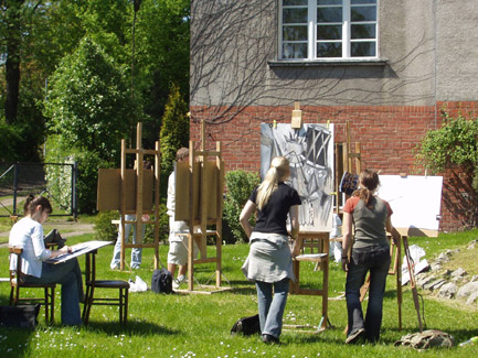 Zakwaterowanie młodych Czechów w domach polskich kolegów stworzyło okazję do lepszego poznania się, a rodzinna atmosfera przyczyniła się do pogłębienia wzajemnej sympatii. Grupę czeską stanowili: Tereza, Tereska, Michał i Paweł, a polską: Marta, Martyna, Olga i Gosia. W trakcie spotkań i warsztatów malarskich, które prowadziła Urszula Łukomska – malarka, towarzyszyli im inni uczestnicy Studium Plastyki przy Śremskim Ośrodku Kultury, a także Agata i Tomek uczniowie Państwowego Liceum Sztuk Plastycznych w Poznaniu, dawni uczestnicy studium. Głównym tematem warsztatów była swobodna interpretacja wybranych obrazów Tadeusza Makowskiego. Była to okazja do poznanie życia i twórczości wybitnego polskiego malarza okresu międzywojennego. Muzeum Śremskie, które patronowało wymianie, zapewniło bardzo ciekawy program pobytu Czechów. Młodzi twórcy rysowali i malowali w plenerach Śremu, Jaszkowa, Grodzewa i Kotowa, zwiedzali Poznań i Rogalin. Podczas pobytu w Poznaniu grupa odwiedziła Liceum Plastyczne, gdzie została ciepło przyjęta przez dyrekcję i uczniów. Spotkanie stało się okazją do skonfrontowania programów nauczania w szkołach artystycznych w obu krajach. Następnie goście udali się do parku na Cytadeli i oglądali rzeźby Magdaleny Abakanowicz. Później spacerowali po starym mieście podziwiając piękną zabudowę Starego Rynku. Pobyt w Poznaniu przeciągnął się do późnych godzin nocnych, gdyż trwała wtedy „noc muzeów". Nasz maraton po muzeach i galeriach zaczął się od Narodowego, przez Ratusz, Galerię Miejską, wernisaż w Starym Browarze, Zamek, a skończył się w Archeologicznym. Było to niezapomniane przeżycie dla wszystkich, szczególnie, że atmosfera w pięknie iluminowanym mieście, w ciepły wieczór, przy tętniących życiem ogródkach kawiarnianych była wspaniała.
